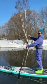 Только посмотрите — сапбордисты в ярких костюмах уже открыли сезон катания по Уче: утки в шоке!